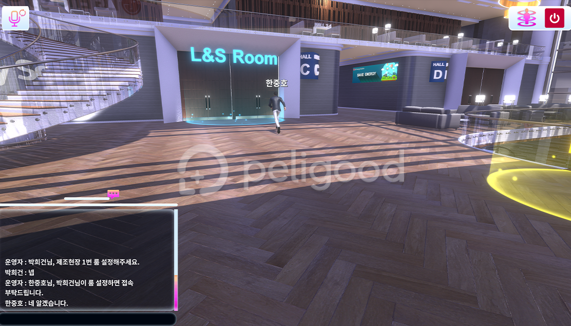 또한 보이스 채팅 기능을 적용하여 훈련생 간의 상호작용을 지원하며 관리자는 실시간으로 개입할 수 있습니다. 각 훈련생들은 교육 종료 이후 소요 자신의 학습내역 확인이 가능합니다. (L&M 개발)