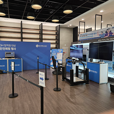 현재 보유하고 있는 자체 콘텐츠는 VR안전콘텐츠,VR화재대피,VR장애체험,VR직업체험 등이며 시뮬레이터 기반 콘텐츠도 함께 사용할 수 있습니다. |