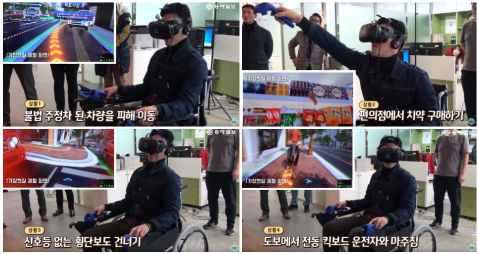 The contents of the physical disability experience can be divided into [full experience] and [partial experience], and as a partial experience ① Avoiding illegally parked cars ② Buying toothpaste at a convenience store ③ Crossing a crosswalk without traffic lights ④ Collision with an oncoming electric kickboard It is divided into four situations. The linked 4D wheelchair allows you to experience dizziness and fear realistically through physical vibration and shaking in uncomfortable scenes.