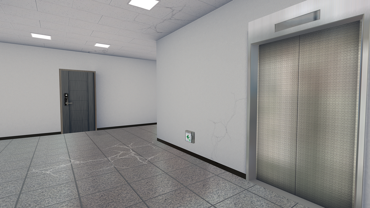 You will choose whether to go to the emergency stairs or the elevator in a quiz format. If you choose an elevator, a warning pop-up will appear to guide you about the dangers of using it, and if you choose an emergency staircase, evacuate quickly to the first floor.